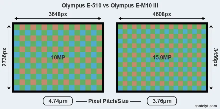 | Sensor Specs | Olympus E-510 | Olympus E-M10 III |