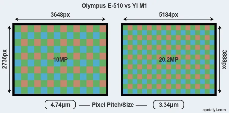 | Sensor Specs | Olympus E-510 | YI M1 |