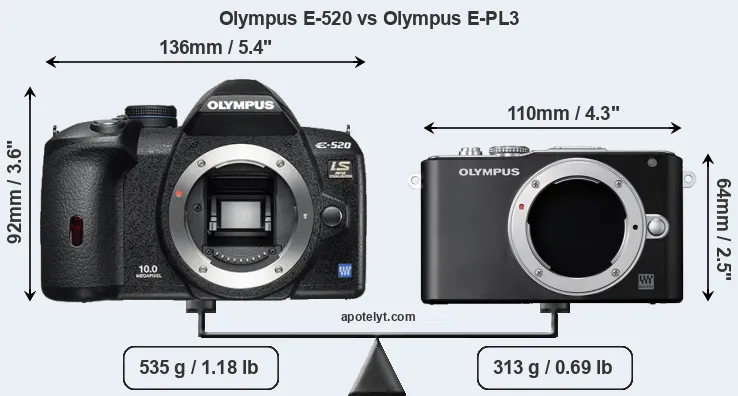| Body Specs | Olympus E-520 | Olympus E-PL3 |