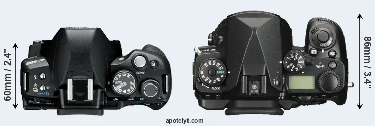 | 14. | Pentax K-1 | 137 mm | 110 mm | 86 mm | 1010 g | 760 | Y | Feb 2016 | US$ 1 799 | ebay.com | |