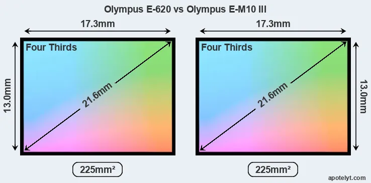 | Sensor Specs | Olympus E-620 | Olympus E-M10 III |