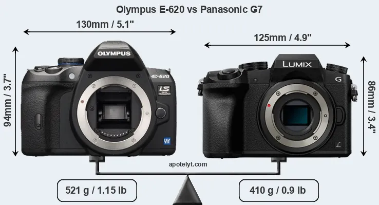 | Body Specs | Olympus E-620 | Panasonic G7 |