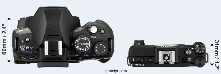 | 2. | Pentax Q | 98 mm | 57 mm | 31 mm | 180 g | 230 | n | Jun 2011 | US$ 649 | ebay.com | |