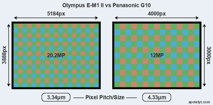 | Sensor Specs | Olympus E-M1 II | Panasonic G10 |
