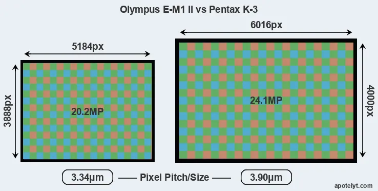 | Sensor Specs | Olympus E-M1 II | Pentax K-3 |