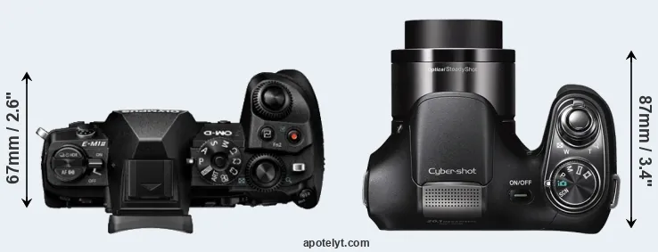 Going beyond this snapshot of core features and characteristics, what are the differences between the Olympus OM-D E-M1 Mark II and the Sony Cyber-shot DSC-H200? Which one should you buy? Read on to find out how these two cameras compare with respect to their body size, their imaging sensors, their shooting features, their input-output connections, and their reception by expert reviewers.