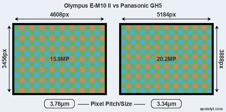 | Sensor Specs | Olympus E-M10 II | Panasonic GH5 |