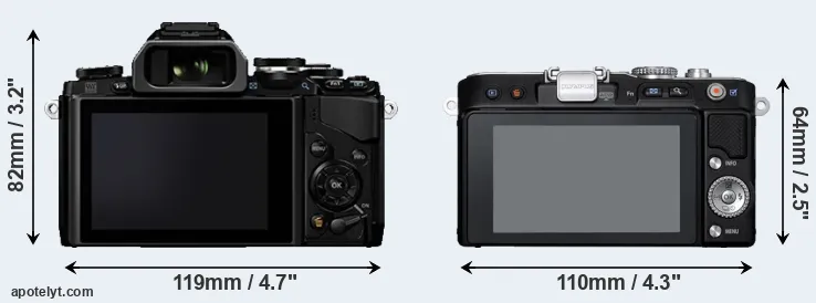 The above size and weight comparisons are to some extent incomplete since they do not consider the interchangeable lenses that both of these cameras require. In this particular case, both cameras feature the same lens mount, so that they can use the same lenses. You can compare the optics available in the Micro Four Thirds Lens Catalog. Mirrorless cameras, such as the two under consideration, have the additional advantage of having a short flange to focal plane distance, which makes it possible to mount many lenses from other systems onto the camera via adapters.