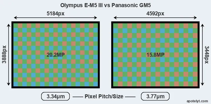 Olympus E-M5 III and Panasonic GM5 sensor measures