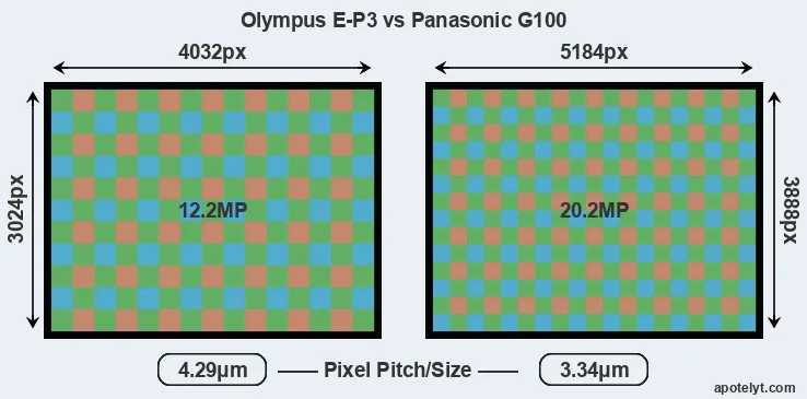 | Sensor Specs | Olympus E-P3 | Panasonic G100 |