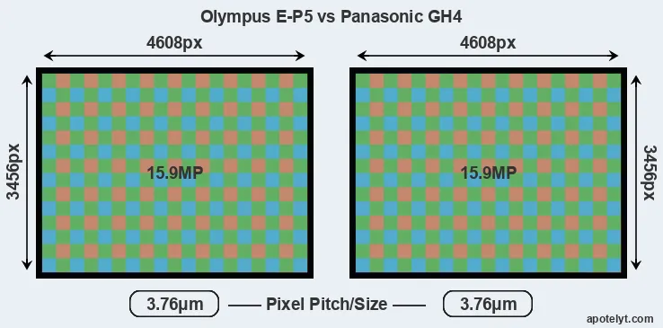 | Sensor Specs | Olympus E-P5 | Panasonic GH4 |