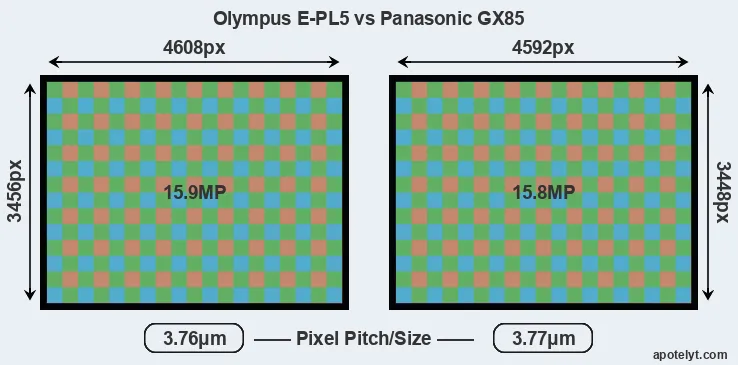 | Sensor Specs | Olympus E-PL5 | Panasonic GX85 |