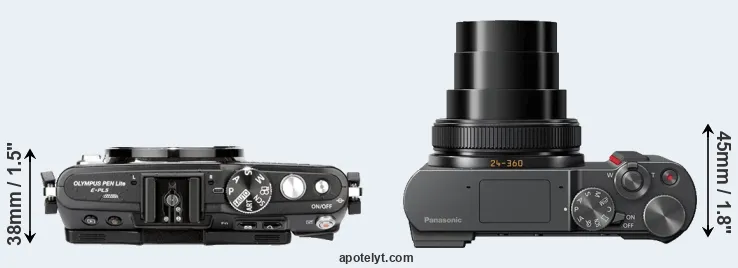The above size and weight comparisons are to some extent incomplete and possibly misleading, as the TZ200 has a lens built in, whereas the E-PL5 is an interchangeable lens camera that requires a separate lens. Attaching the latter will add extra weight and bulk to the setup. You can compare the optics available for the E-PL5 and their specifications in the Micro Four Thirds Lens Catalog.