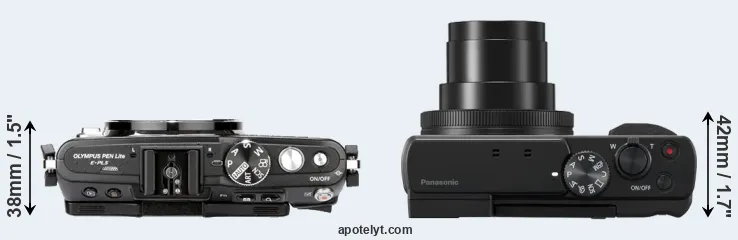 The side-by-side display below illustrates the physical size and weight of the Olympus E-PL5 and the Panasonic ZS80. The two cameras are presented according to their relative size. Three consecutive perspectives from the front, the top, and the back are available. All width, height and depth dimensions are rounded to the nearest millimeter.