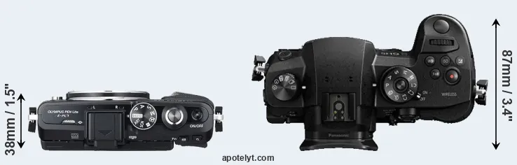 The side-by-side display below illustrates the physical size and weight of the Olympus E-PL7 and the Panasonic GH5. The two cameras are presented according to their relative size. Three consecutive perspectives from the front, the top, and the back are available. All width, height and depth measures are rounded to the nearest millimeter.