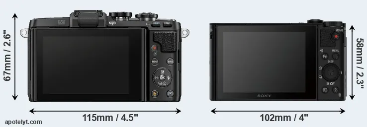 The above size and weight comparisons are to some extent incomplete and possibly misleading, as the HX90V has a lens built in, whereas the E-PL7 is an interchangeable lens camera that requires a separate lens. Attaching the latter will add extra weight and bulk to the setup. You can compare the optics available for the E-PL7 and their specifications in the Micro Four Thirds Lens Catalog.