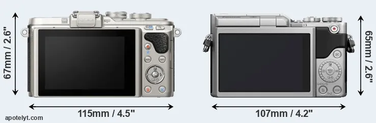 | 7. | Olympus E-PL7 | 115 mm | 67 mm | 38 mm | 357 g | 350 | n | Aug 2014 | US$ 599 | ebay.com | |