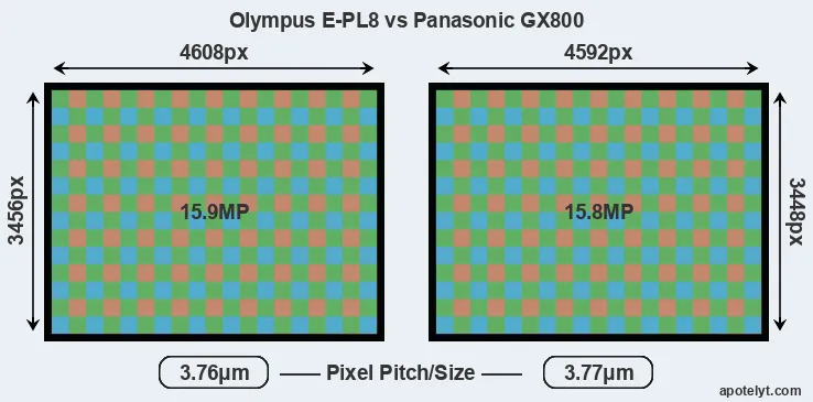 | Sensor Specs | Olympus E-PL8 | Panasonic GX800 |