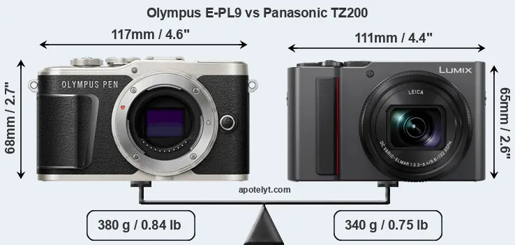 The above size and weight comparisons are to some extent incomplete and possibly misleading, as the TZ200 has a lens built in, whereas the E-PL9 is an interchangeable lens camera that requires a separate lens. Attaching the latter will add extra weight and bulk to the setup. You can compare the optics available for the E-PL9 and their specifications in the Micro Four Thirds Lens Catalog.
