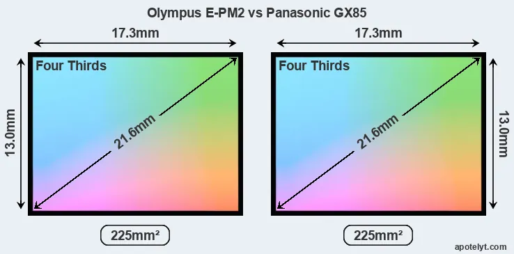 | Sensor Specs | Olympus E-PM2 | Panasonic GX85 |
