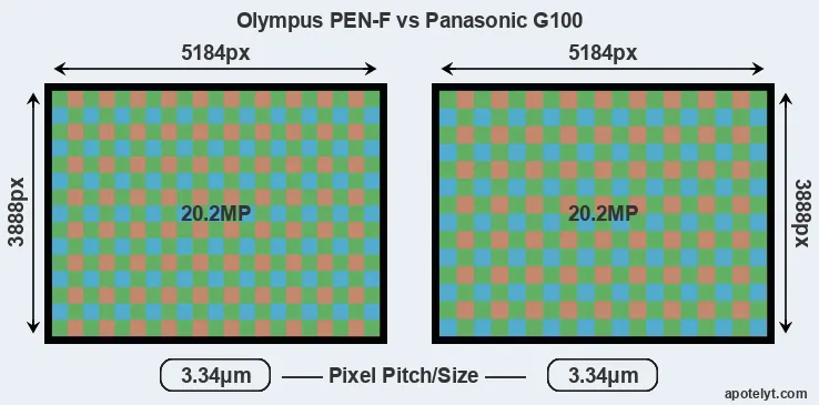 | Sensor Specs | Olympus PEN-F | Panasonic G100 |