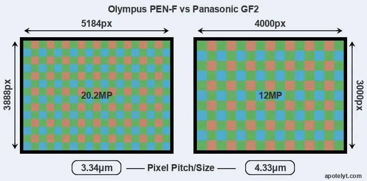 | Sensor Specs | Olympus PEN-F | Panasonic GF2 |