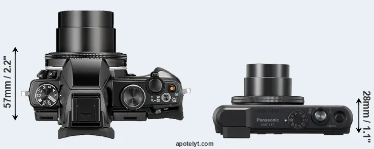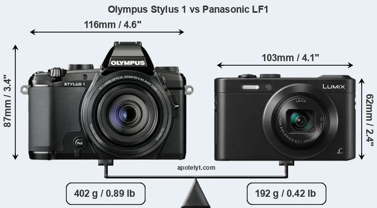 If the front view area (width x height) of the cameras is taken as an aggregate measure of their size, the Panasonic LF1 is considerably smaller (37 percent) than the Olympus Stylus 1. Moreover, the LF1 is substantially lighter (52 percent) than the Stylus 1. In this context, it is worth noting that neither the Stylus 1 nor the LF1 are weather-sealed.