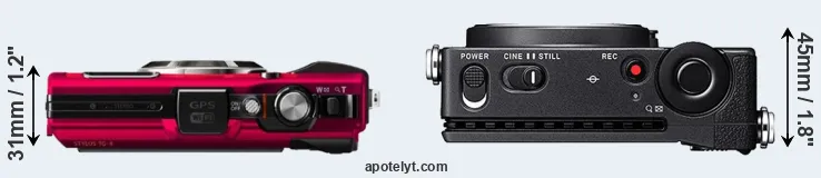 The above size and weight comparisons are to some extent incomplete and possibly misleading, as the TG-4 has a lens built in, whereas the fp is an interchangeable lens camera that requires a separate lens. Attaching the latter will add extra weight and bulk to the setup.