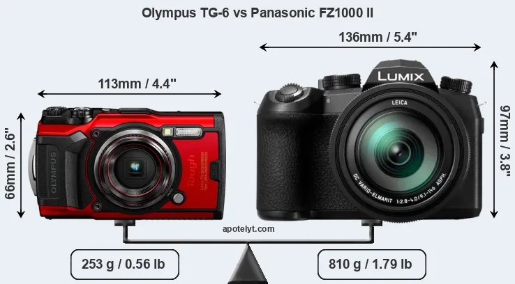 | Body Specs | Olympus TG-6 | Panasonic FZ1000 II |