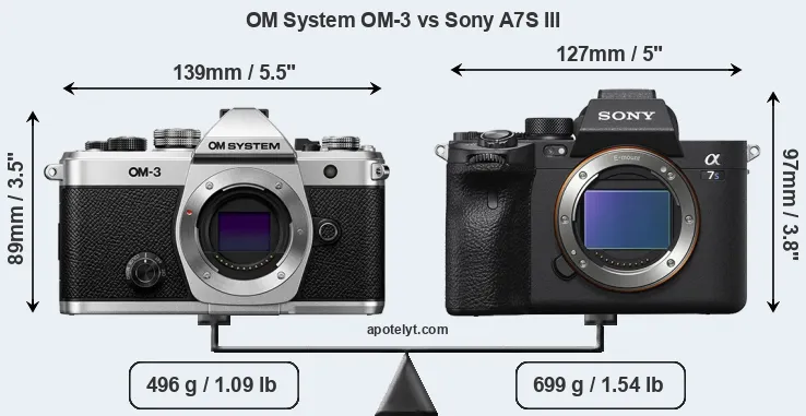Size OM System OM-3 vs Sony A7S III