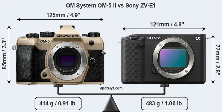 The OM System OM-5 II and the Sony ZV-E1 are two digital cameras that were revealed to the public, respectively, in June 2025 and March 2023. Both the OM-5 II and the ZV-E1 are mirrorless interchangeable lens cameras that are based on a Four Thirds (OM-5 II) and a full frame (ZV-E1) sensor. The OM System has a resolution of 20.2 megapixels, whereas the Sony provides 12 MP.