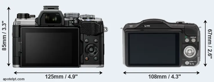 The above size and weight comparisons are to some extent incomplete since they do not consider the interchangeable lenses that both of these cameras require. In this particular case, both cameras feature the same lens mount, so that they can use the same lenses. You can compare the optics available in the Micro Four Thirds Lens Catalog. Mirrorless cameras, such as the two under consideration, have the additional advantage of having a short flange to focal plane distance, which makes it possible to mount many lenses from other systems onto the camera via adapters.