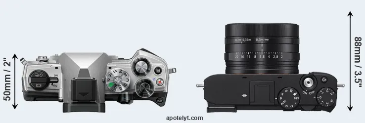 The above size and weight comparisons are to some extent incomplete and possibly misleading, as the RX1R III has a lens built in, whereas the OM-5 is an interchangeable lens camera that requires a separate lens. Attaching the latter will add extra weight and bulk to the setup. You can compare the optics available for the OM-5 and their specifications in the Micro Four Thirds Lens Catalog.