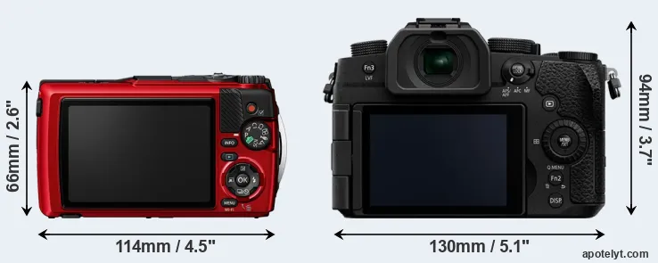 The above size and weight comparisons are to some extent incomplete and possibly misleading, as the TG-7 has a lens built in, whereas the G97 is an interchangeable lens camera that requires a separate lens. Attaching the latter will add extra weight and bulk to the setup. You can compare the optics available for the G97 and their specifications in the Micro Four Thirds Lens Catalog.