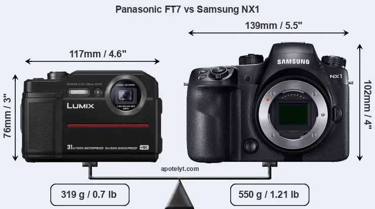 The above size and weight comparisons are to some extent incomplete and possibly misleading, as the FT7 has a lens built in, whereas the NX1 is an interchangeable lens camera that requires a separate lens. Attaching the latter will add extra weight and bulk to the setup.