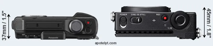The above size and weight comparisons are to some extent incomplete and possibly misleading, as the FT7 has a lens built in, whereas the fp is an interchangeable lens camera that requires a separate lens. Attaching the latter will add extra weight and bulk to the setup.
