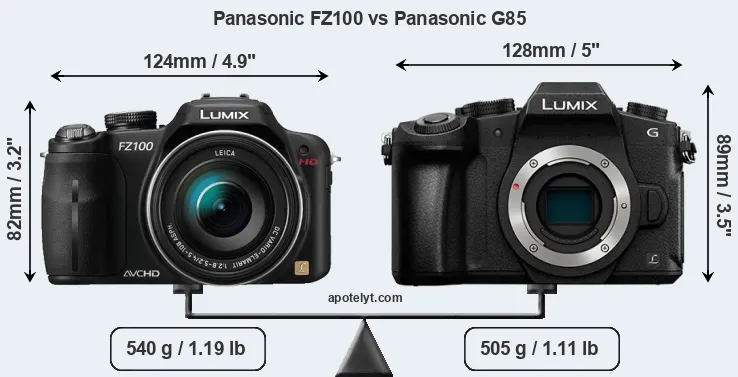 | Body Specs | Panasonic FZ100 | Panasonic G85 |