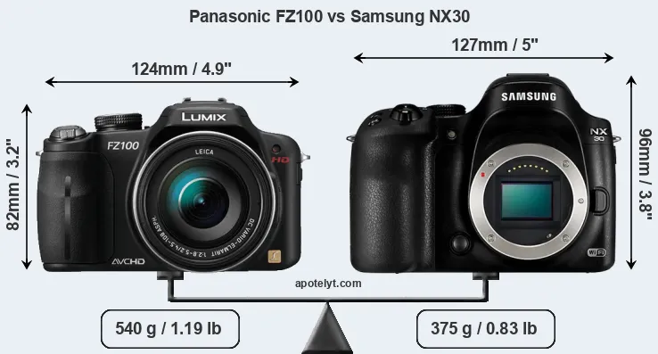 | Body Specs | Panasonic FZ100 | Samsung NX30 |