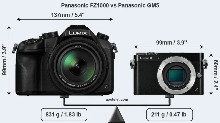 The above size and weight comparisons are to some extent incomplete and possibly misleading, as the FZ1000 has a lens built in, whereas the GM5 is an interchangeable lens camera that requires a separate lens. Attaching the latter will add extra weight and bulk to the setup. You can compare the optics available for the GM5 and their specifications in the Micro Four Thirds Lens Catalog.