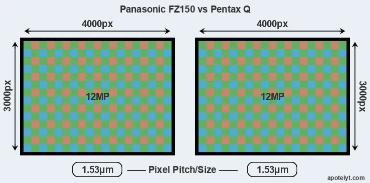 | Sensor Specs | Panasonic FZ150 | Pentax Q |