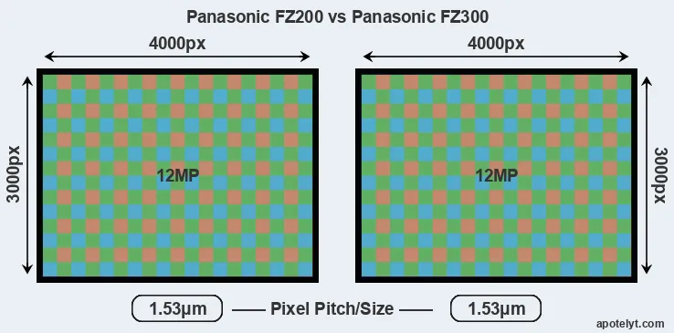 | Sensor Specs | Panasonic FZ200 | Panasonic FZ300 |