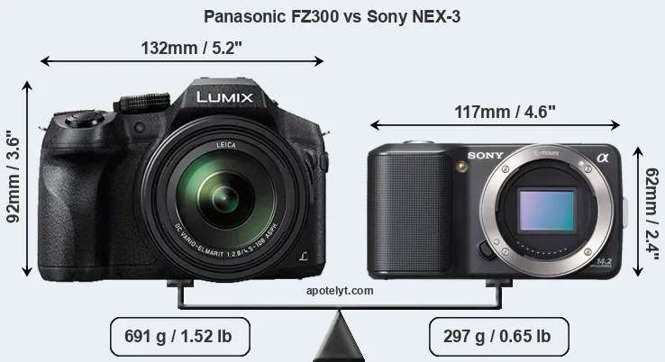 | Body Specs | Panasonic FZ300 | Sony NEX-3 |