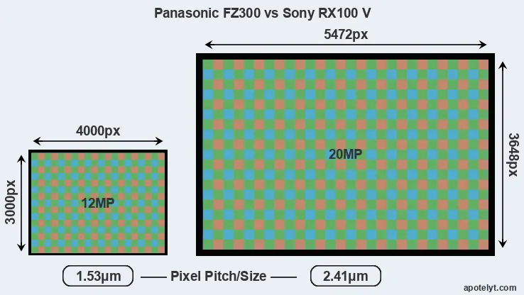 | Sensor Specs | Panasonic FZ300 | Sony RX100 V |