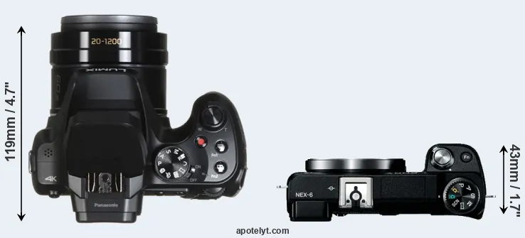 The Panasonic Lumix DC-FZ80 (called Panasonic FZ82 in some regions) and the Sony Alpha NEX-6 are two digital cameras that were revealed to the public, respectively, in January 2017 and September 2012. The FZ80 is a fixed lens compact, while the NEX-6 is a mirrorless interchangeable lens camera. The cameras are based on a 1/2.3-inch (FZ80) and an APS-C (NEX-6) sensor. The Panasonic has a resolution of 18 megapixels, whereas the Sony provides 16 MP.