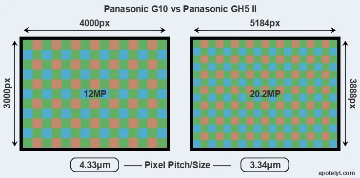 | Sensor Specs | Panasonic G10 | Panasonic GH5 II |