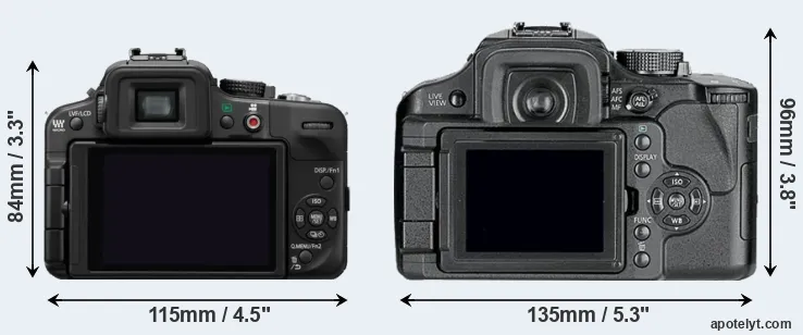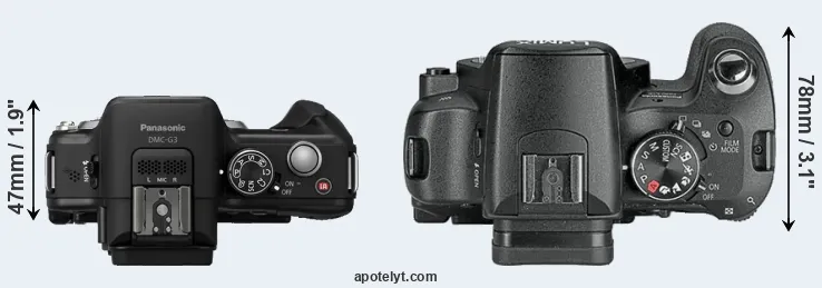 The above size and weight comparisons are to some extent incomplete since they do not consider the interchangeable lenses that both of these cameras require. Both cameras have similarly sized sensors, but DSLRs have a larger flange-to-focal plane distance than mirrorless cameras, which imposes contraints on the optical engineering process and generally leads to bigger and heavier lenses. You can compare the optics available for the two cameras in the Micro Four Thirds Lens Catalog (G3) and the Four Thirds Lens Catalog (L10). Mirrorless cameras, such as the Panasonic G3, have moreover the advantage that they have a relatively short flange to focal plane distance and can thus use many lenses from other systems via adapters.