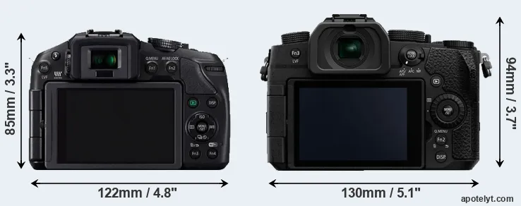 The side-by-side display below illustrates the physical size and weight of the Panasonic G6 and the Panasonic G90. The two cameras are presented according to their relative size. Three consecutive perspectives from the front, the top, and the back are available. All width, height and depth dimensions are rounded to the nearest millimeter.