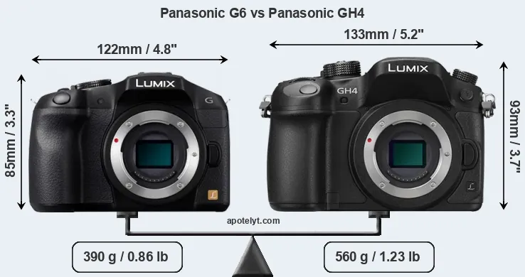 | Body Specs | Panasonic G6 | Panasonic GH4 |
