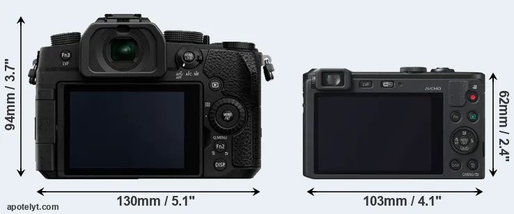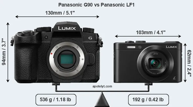 If the front view area (width x height) of the cameras is taken as an aggregate measure of their size, the Panasonic LF1 is considerably smaller (48 percent) than the Panasonic G90. It is worth mentioning in this context that the G90 is splash and dust resistant, while the LF1 does not feature any corresponding weather-sealing.