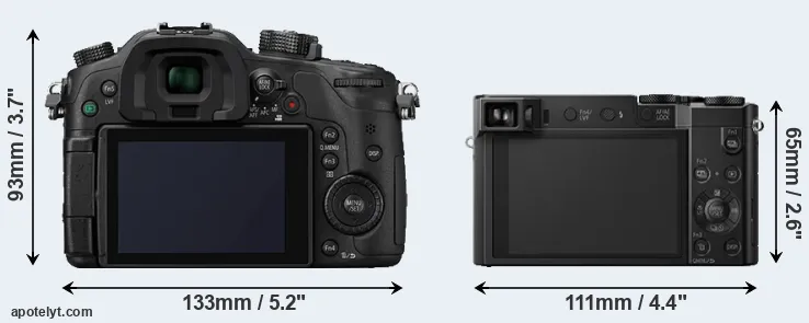 If the front view area (width x height) of the cameras is taken as an aggregate measure of their size, the Panasonic TZ100 is considerably smaller (42 percent) than the Panasonic GH4. It is worth mentioning in this context that the GH4 is splash and dust resistant, while the TZ100 does not feature any corresponding weather-sealing.